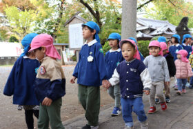すみれ、もも、うめ、さくら組で氷川神社へ七五三のお参りに行きました。