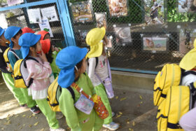 14日(金)、秋晴れの中、幼児組はむさしの村へ遠足に出かけました。