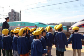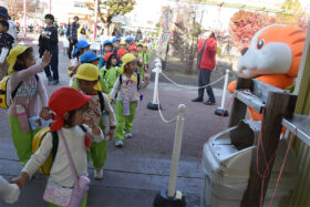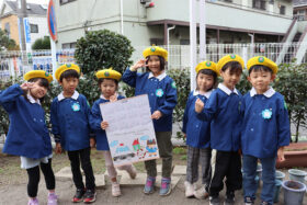 勤労感謝の日に因んで、さくら組は園を代表して、「いつもありがとう」の気持ちを伝えに交番、消防署、駅へ伺いました。