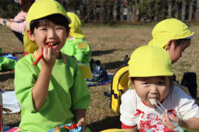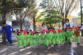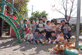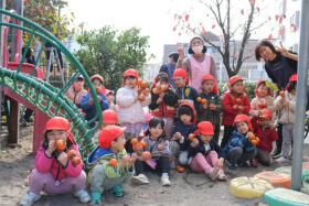 11月は幼児組全員で「むさしの村」への遠足をはじめ、みかん・柿狩り、ドングリや落ち葉を拾っての制作活動等、秋の美しさ、豊かさを十分に体感することができました。さらに、うめ組の戸田西ロータリークラブの皆様との大前緑地への花植えや、さくら組が行った事業所訪問など、地域の方々との交流をとおして、子どもたちの視野がさらに広がったことと思います。寒さが一段と厳しくなるこれからの季節、インフルエンザ等の感染症予防に十分に注意をしながら、元気に生活してまいります。