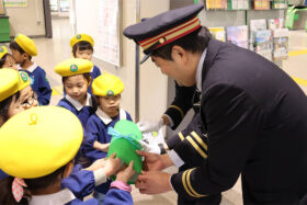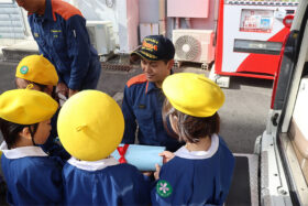 訪問を快く受け入れてくださり秘密の電話やボタンの使い方、水上はバイクにも乗せて頂いたりと子ども達は目をキラキラさせながら話しを聞いていました。お仕事の内容やこんな時はどうしたらいいの?など、子どもたちの質問にも向き合って答えてくださり、有意義な時間を過ごしました。