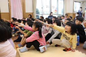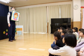 その後は不審な人に遭遇した場合、自分の命を守るためにはどのように行動したらよいかをパペットシアター人形劇を通して4つのお約束事を学びました。話をよく聞いていた子どもたちはまた一つ学びを深め、お約束を守って安全に過ごすことができるでしょう。