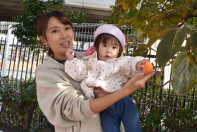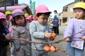 今年は太陽の光をたくさん浴びて育った柿が数多く実り、今か今かと収穫を楽しみにしていた子どもたちでした。枝に付いた柿を一つ一つ丁寧にもぎ取り、「美味しそう!」とつぶやきながら、みんなで収穫を楽しみました。