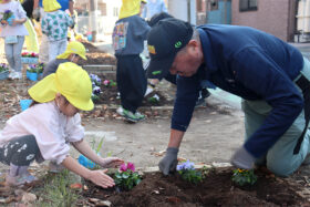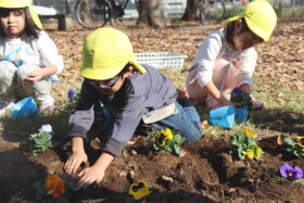 27日(木)、戸田西ロータリークラブの皆さんとうめ組のお友だちが、大前緑地の花壇にパンジーを植えました。
