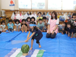35度を超える猛暑日が続くなど記録的な暑さとなった8月ですが、子どもたちは水遊びやプール遊びで有意義な時間を過ごしました。自分たちで育てたナスやピーマンを収穫して、味噌炒めで美味しくいただくなど、夏の自然を実際に体感することもできました。ま...