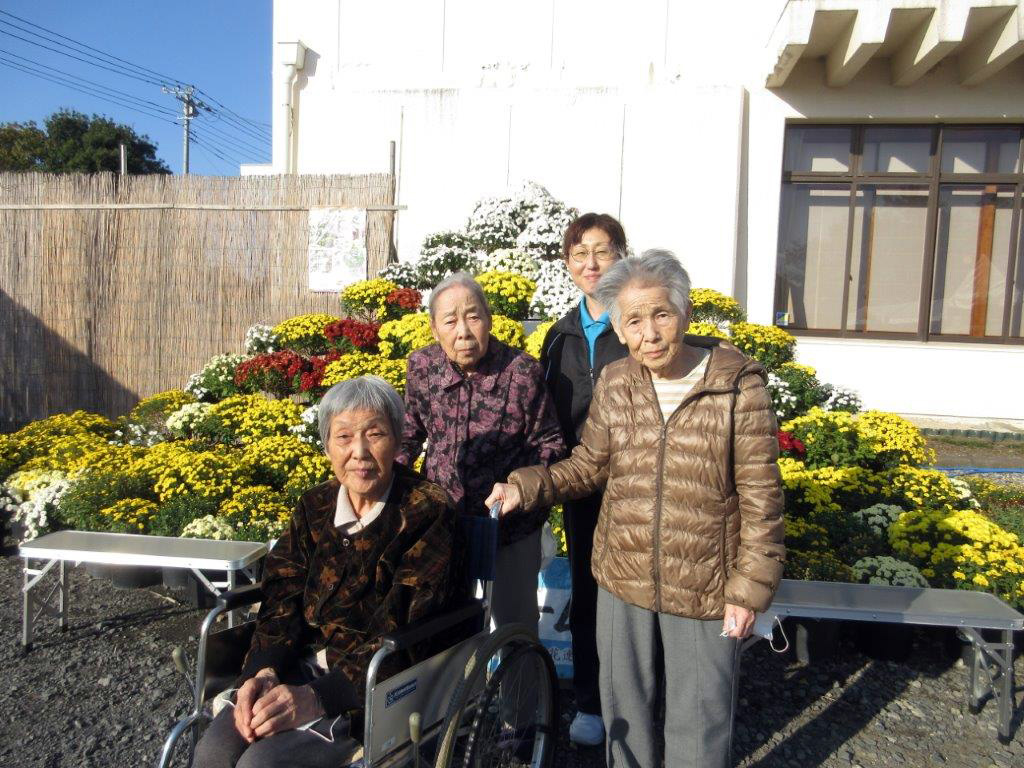 「じゃあ、少し外へ出てみますか。」近くのお仲間も誘い園庭に出てみる事にしました。お一人の方は外に出ると聞いて上着を1枚羽織ってきています。「うわあ、暑い!驚いたねえ。」出入り口の扉があいた瞬間、皆さまから一様に驚きの声が上がります。
