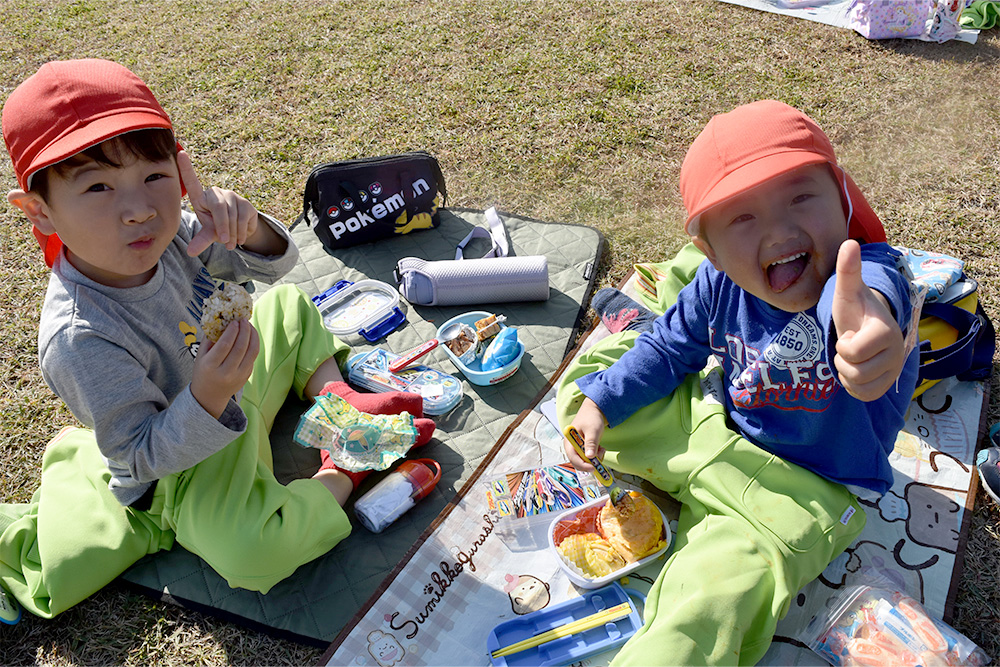 待ちに待ったお弁当タイムでは、愛情たっぷりのお弁当やおやつを美味しくいただきました。その後はふれあい牧場を散歩し、帰りのバスでは疲れてぐっすり眠る可愛い寝顔が印象的。すてきな思い出がまた一つ増えました。