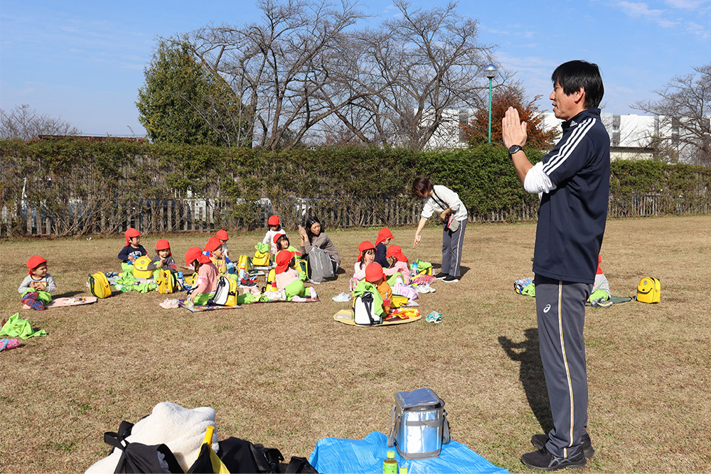 11月は幼児組全員で「むさしの村」への遠足をはじめ、みかん・柿狩り、ドングリや落ち葉を拾っての制作活動等、秋の美しさ、豊かさを十分に体感することができました。さらに、うめ組の戸田西ロータリークラブの皆様との大前緑地への花植えや、さくら組が行った事業所訪問など、地域の方々との交流をとおして、子どもたちの視野がさらに広がったことと思います。寒さが一段と厳しくなるこれからの季節、インフルエンザ等の感染症予防に十分に注意をしながら、元気に生活してまいります。
