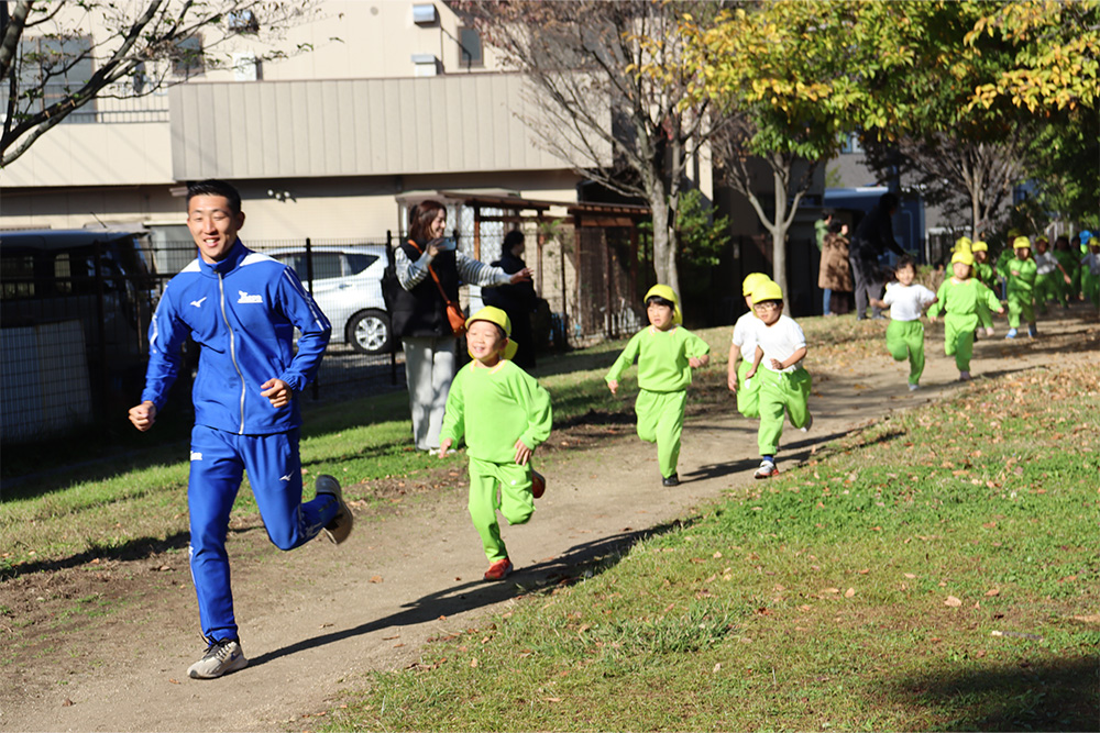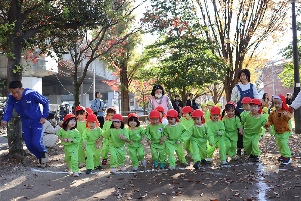 普段の園生活の中やご家庭で、大会に向けて練習に取り組んできた子どもたち。お友だち同士で声援を送り合いながら、全員最後まで完走することができました。