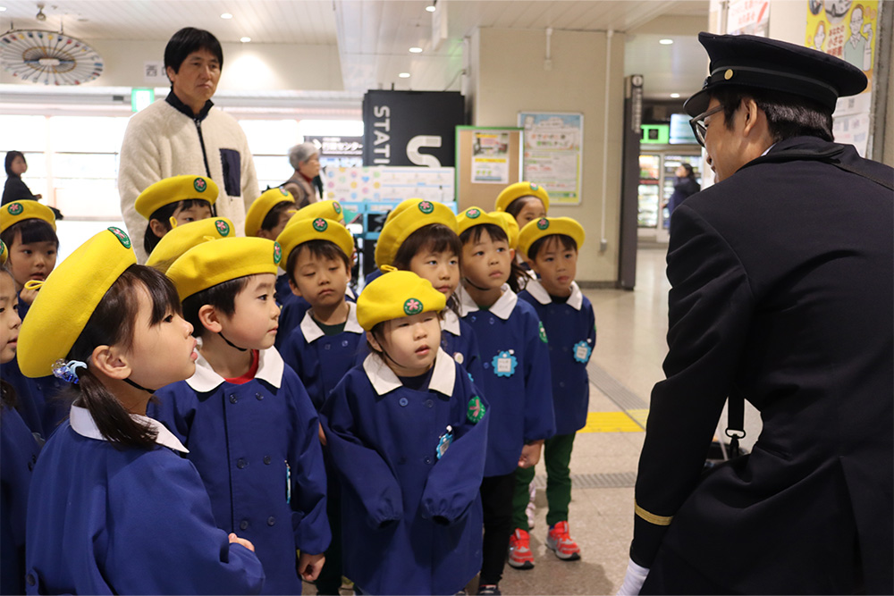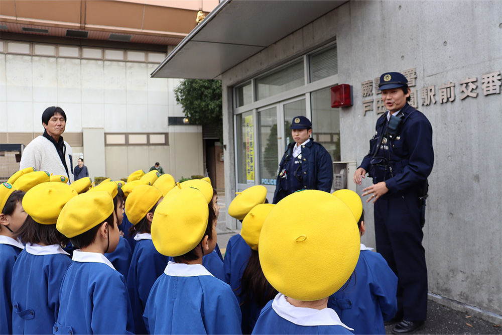勤労感謝の日に因んで、さくら組は園を代表して、「いつもありがとう」の気持ちを伝えに交番、消防署、駅へ伺いました。