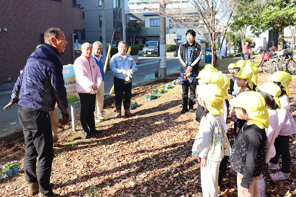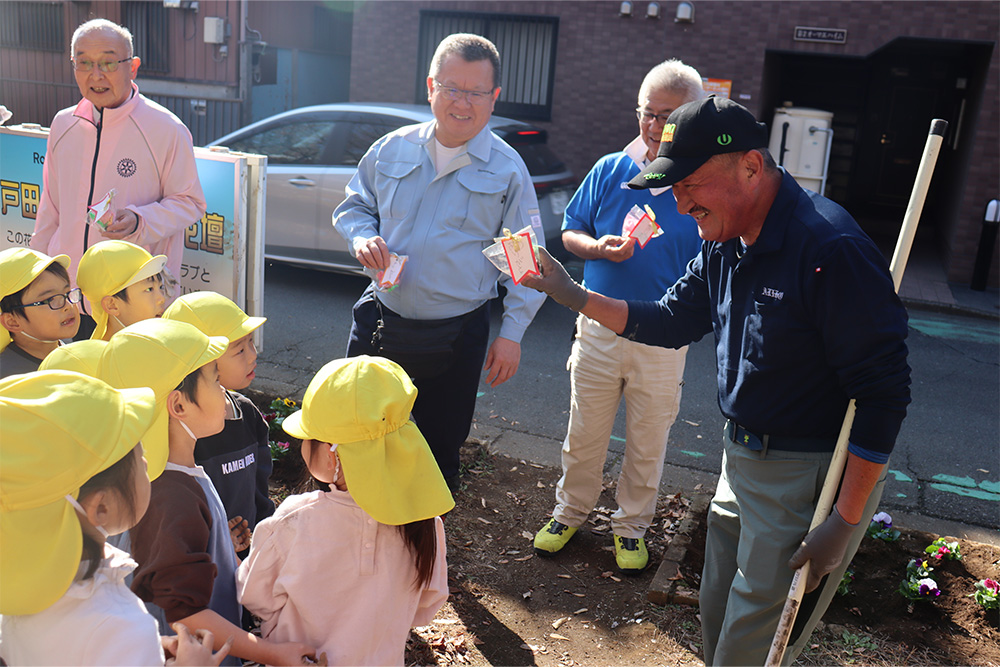 27日(木)、戸田西ロータリークラブの皆さんとうめ組のお友だちが、大前緑地の花壇にパンジーを植えました。