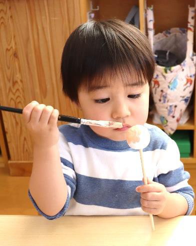また、さくら組はお家で飾る鏡餅作りをしました。お餅を丸くするのに戸惑っていましたが、上手に丸めて鏡餅が完成しました。それぞれ出来上がった鏡餅を嬉しそうに、見せ合っていました。