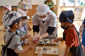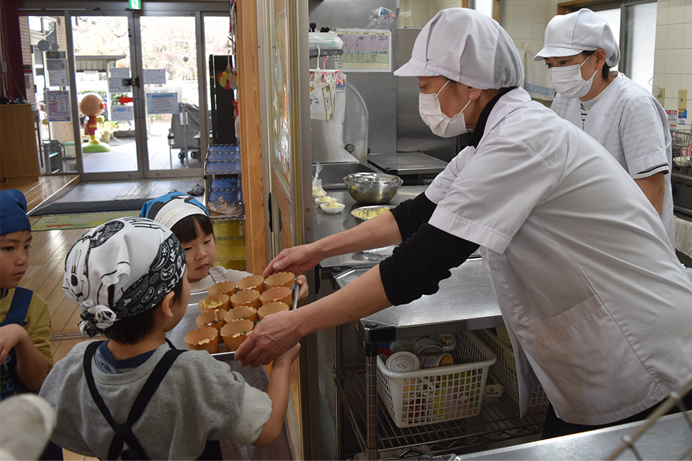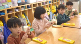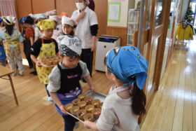 先生方には手渡しをし直接「ありがとう!美味しそう!嬉しい!」とお声を頂き嬉しそうな子どもたち。自分で作ったマフィンも「美味しい!可愛い味!幸せな味!」など笑顔いっぱいで頬張っていました。自分の為、人の為に作ったマフィンで心の栄養を満点にした子どもたちでした☆