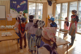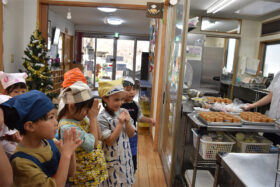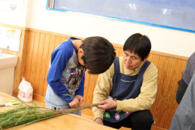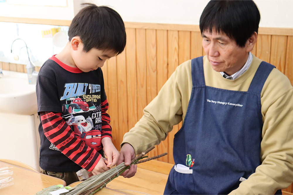 12月は子どもたちと職員とで、お餅つき会・クリスマス会・門松作り・正月の飾りつけなど、日本の伝統行事を体験しました。特にお餅つき会では、昔ながらの杵と臼でペッタン、ペッタンとお餅をつきました。園長先生やお友だちとついたつきたてのお餅の味は、とっても美味しかったことと思います。
