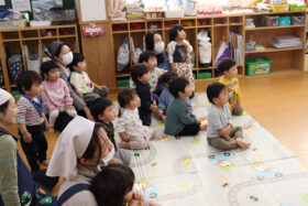 すみれ組の保育参観では、朝の会や主活動を観ていただきました。