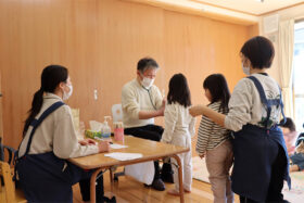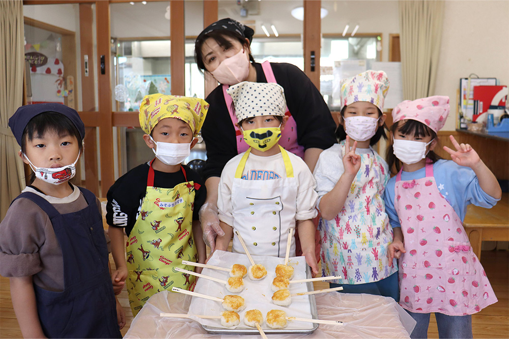 自分たちで作ったものは一層美味しかったようです☆園長先生から五平餅作りの意味を聞き、食への感謝をより一層深めた子どもたちでした。
