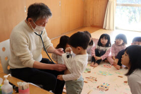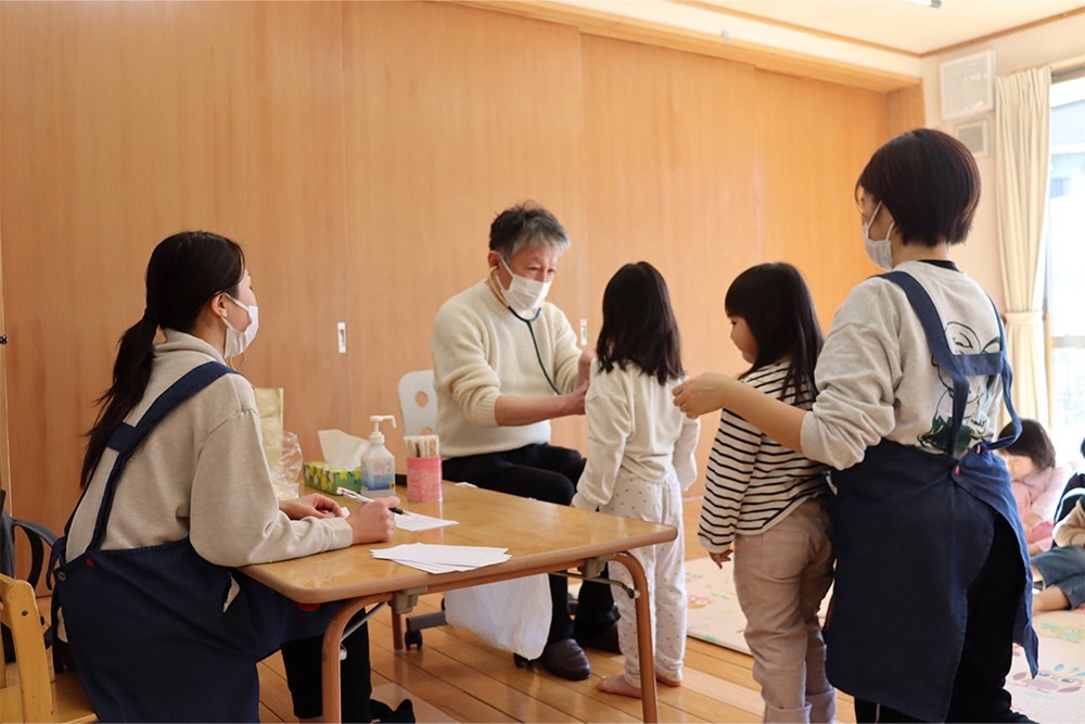 インフルエンザがまだまだ流行する中、新年から全員出席の日もあるほど、元気に登園している子どもたち。心音、皮膚疾患など丁寧に診ていただき、全員が異常なしでした。