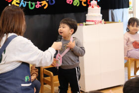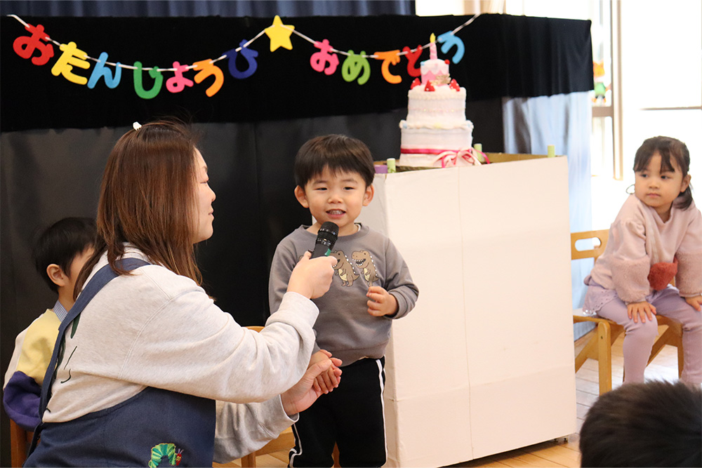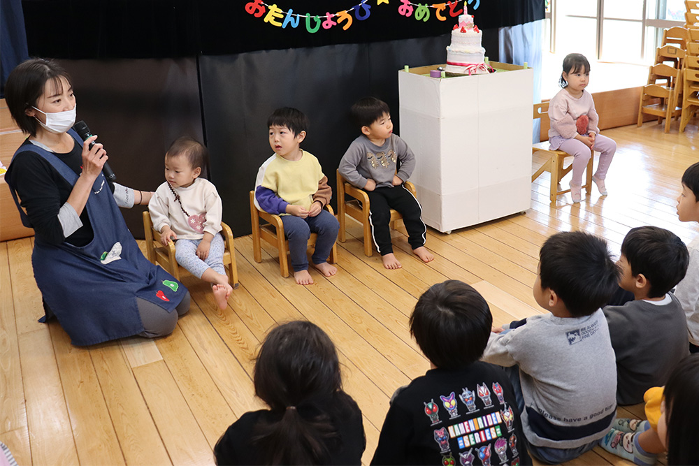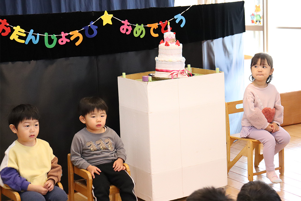 乳児組は2名、幼児組は1名のお友だちがお誕生日を迎えました。