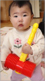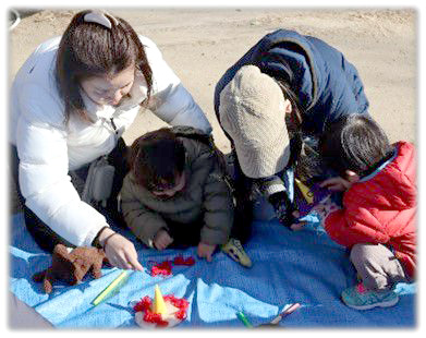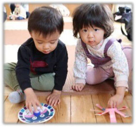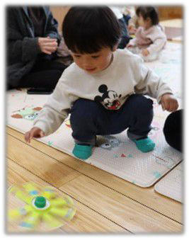 だるま落とし・羽子板・けん玉で遊びました。最初はお母さんから離れられなかった子も遊びに集中して楽しんでいました。