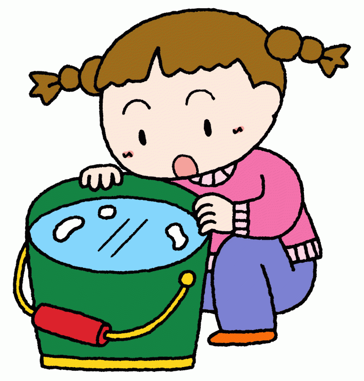 • こおり作り・コップやバケツに水を張って日陰においてみましょう。
