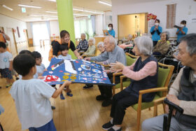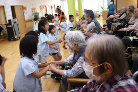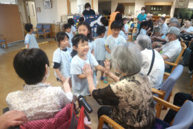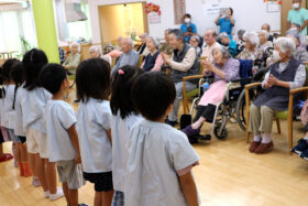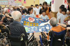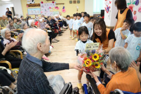 今年もさくら組さんが特別養護老人ホームの「恒寿苑」さんと、「みずほの里みのり館」さんへ敬老の日のお祝いに伺いました。