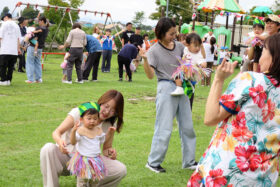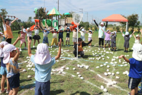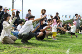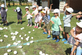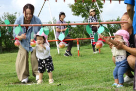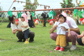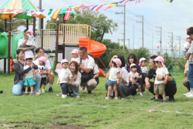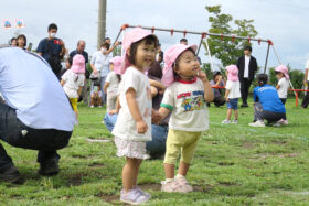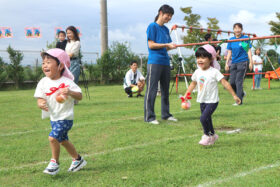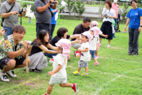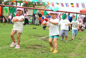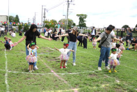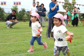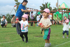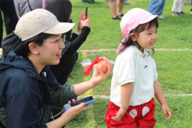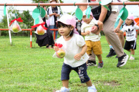 リンゴ狩り競争では、小さな手からリンゴが滑り落ちてしまったり、コースを逆走してしまう可愛い場面にたくさんのあたたかい声援がありました。