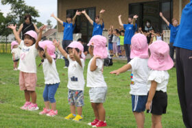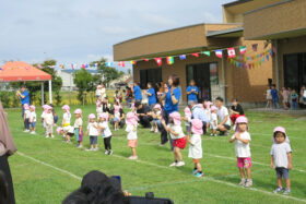 すみれ組はパパやママから離れて開会式に参加し、お歌や体操を披露してくれました!
