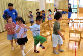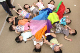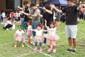最後は2園さんが「ガンバリング応援団」、かぐらさんは「アロハエコモマイ」の曲で親子ダンス♪ お家での練習にもご協力いただき、大成功に終わることができました。