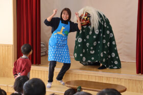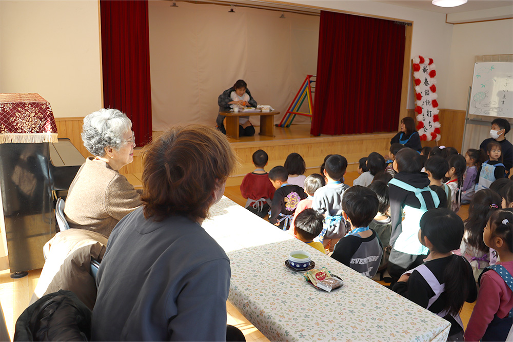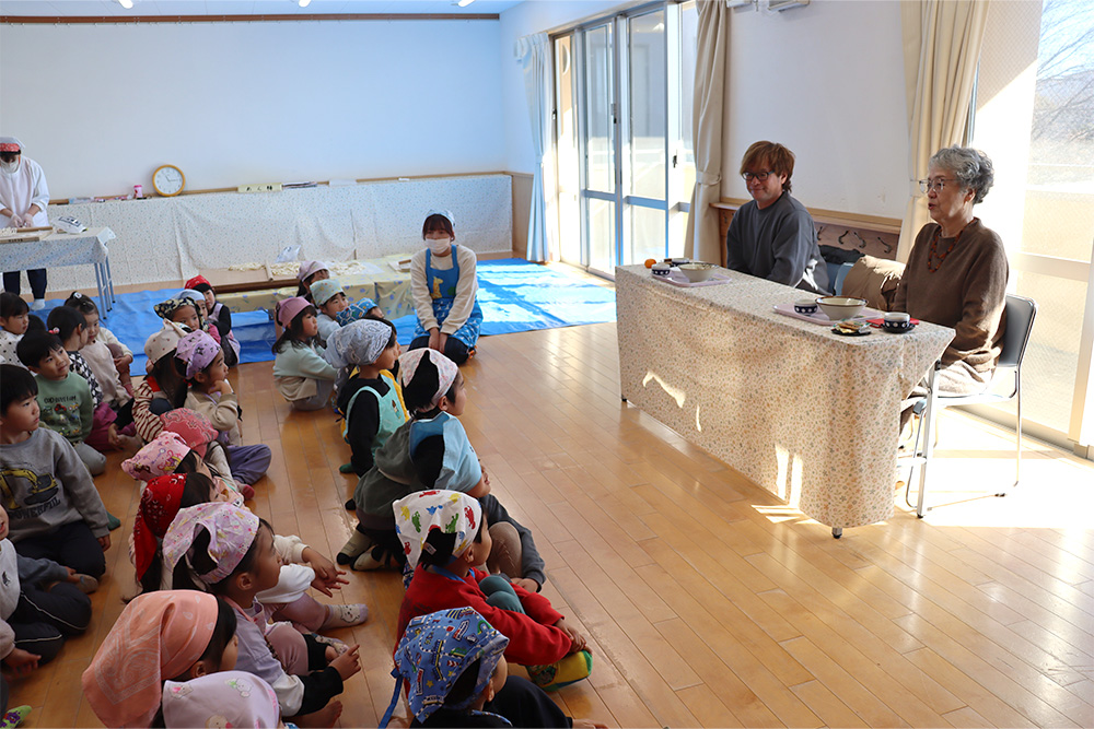 うどんが茹で上がるまでの待ち時間には、保育士による二人羽織の出し物もあり、笑顔と笑い声があふれる楽しいひとときとなりました。