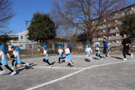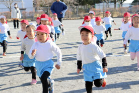 保育参観を兼ねたマラソン大会を行いました。対象は、もも組・うめ組・さくら組です。