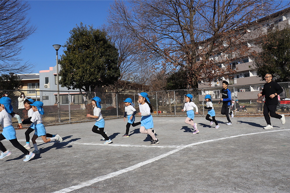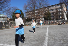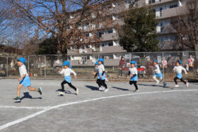 体育指導の一郎先生のスタートの合図で走り出した子どもたちは、いつも以上に気合十分で、一人ひとりが最後まで走りきろうと一生懸命取り組んでいました。おうちの方々の温かい声援が力となり、苦しくなっても前を向いて走り続ける姿がとても印象的でした。
