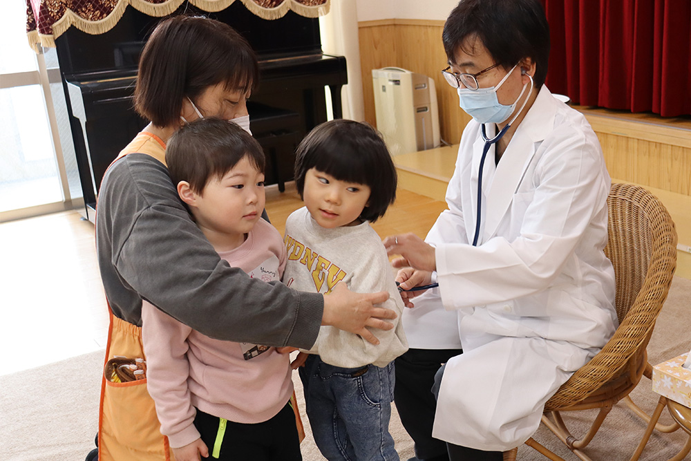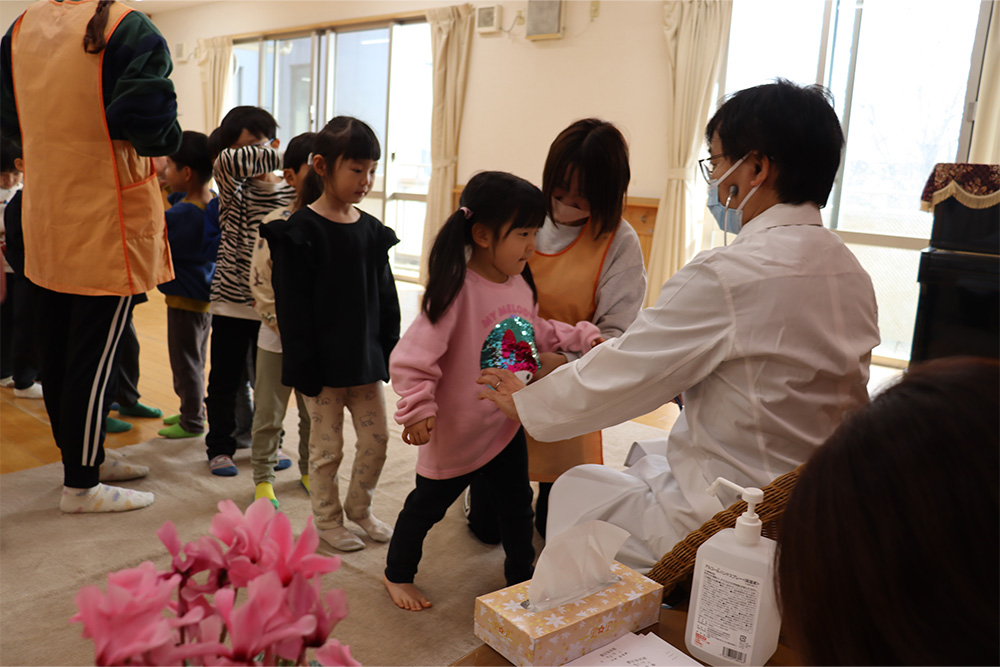 園医の竹下啓先生による内科検診が行われました。皆ほとんど異常なしでした。受診を勧められたご家庭は早めの受診をお願いします。まだまだ寒い冬が続きます。健やかに過ごせるよう、引き続き体調管理に留意して保育にあたります。