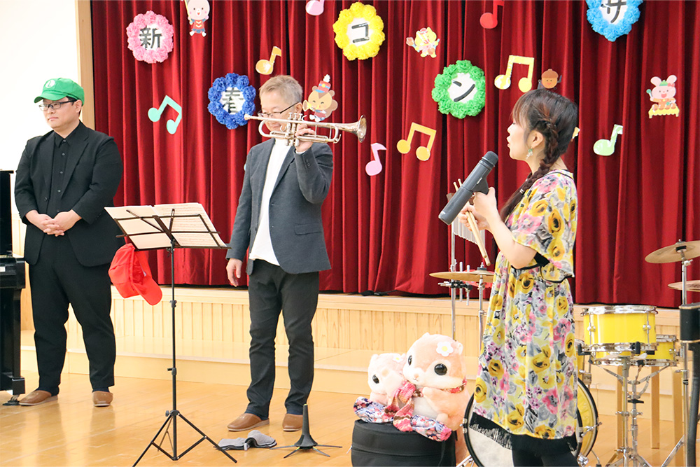 当日は、トランペットの田中充さん、ピアノの粟根祐人さん、ドラムの鈴木亜由美さんをお招きし、迫力のある生演奏を間近で楽しむ、豪華なコンサートとなりました。