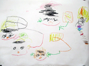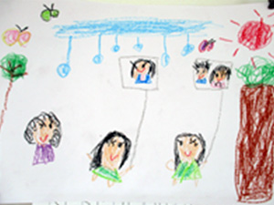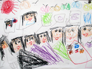 園児作品展 2026年1月 凧あげ 1月 2026.02.02 保育園の生活の中で子供たちが経験した行事や出来事を楽しく描きました。ご覧ください。 令和8年冬、凧あげのようすを描きました。うめ組(4~5才)の作品です。