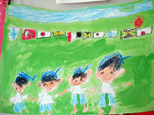 園児作品展 2025年10月 運動会 10月 2025.11.05 保育園の生活の中で子供たちが経験した行事や出来事を楽しく描きました。ご覧ください。 令和7年秋、運動会を開催しました。楽しかった運動会の様子を描きました。うめ組(4~5才)の作品です。