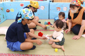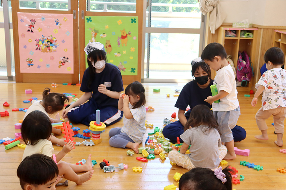 中には「将来は保育士になりたい」という夢を語ってくれる生徒もいて、子どもたちとの関わり方に一生懸命取り組んでいました。保育士ではなかなか気づけないような新鮮な目線で子どもに接してくれる場面もあり、その姿に職員も学ばされることが多くありました。子どもたちの目線に合わせて話しかけたり、優しく手をとって遊んだりする姿はとても頼もしく、子どもたちも安心して心を開いていました。