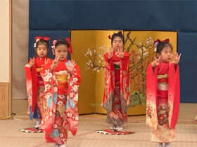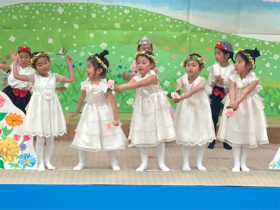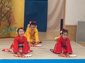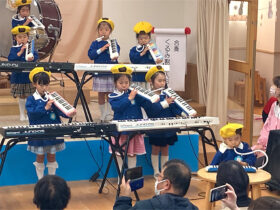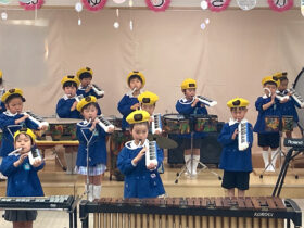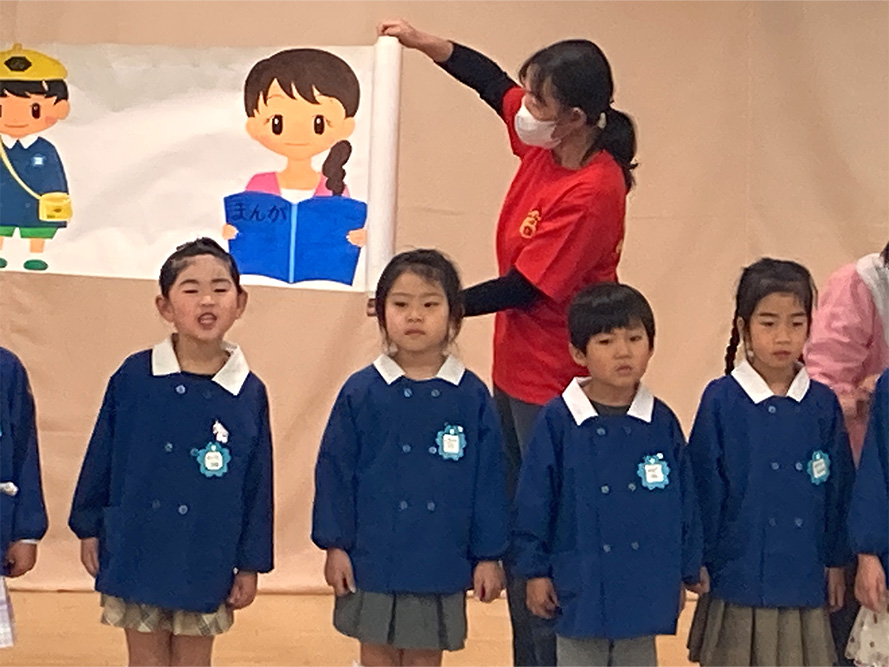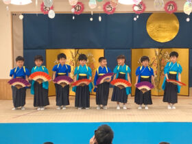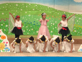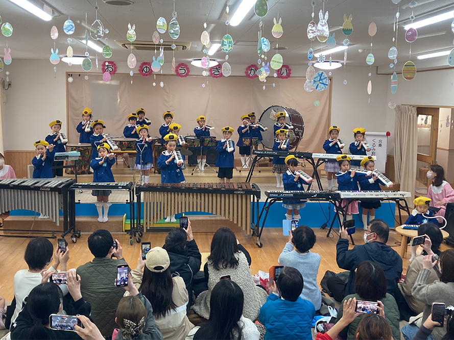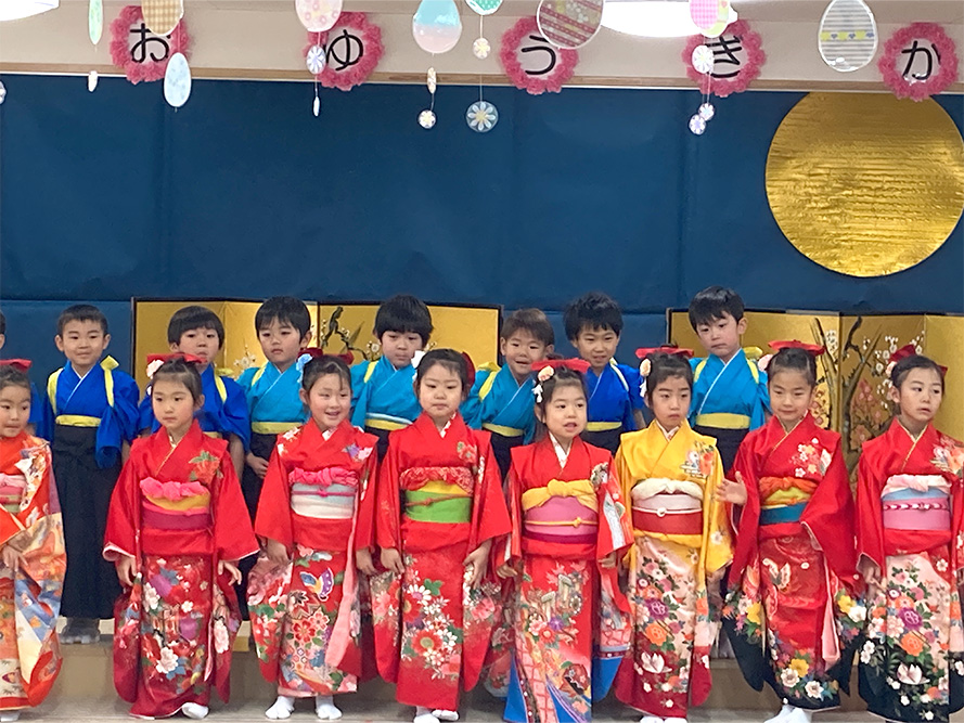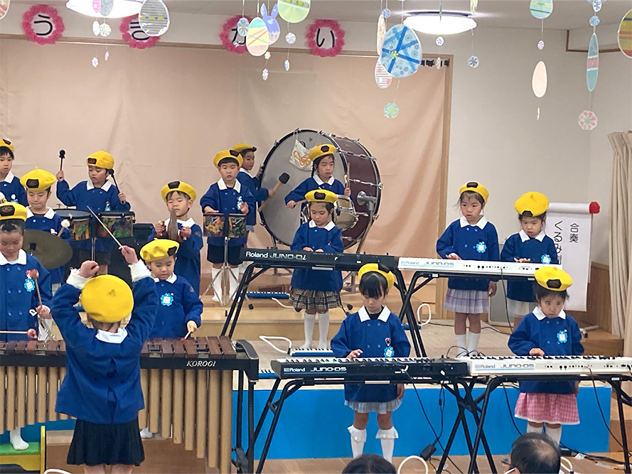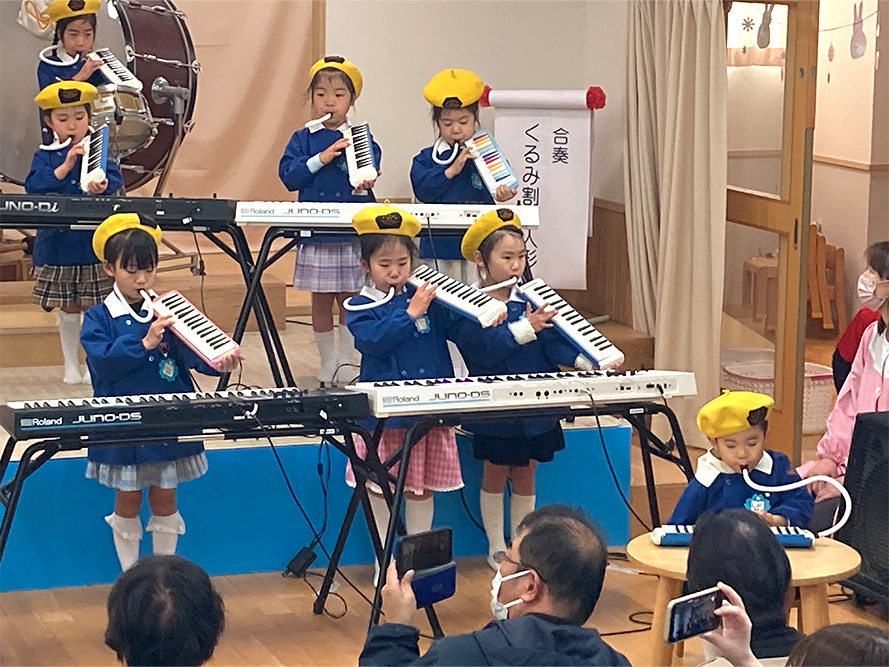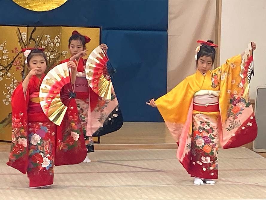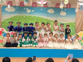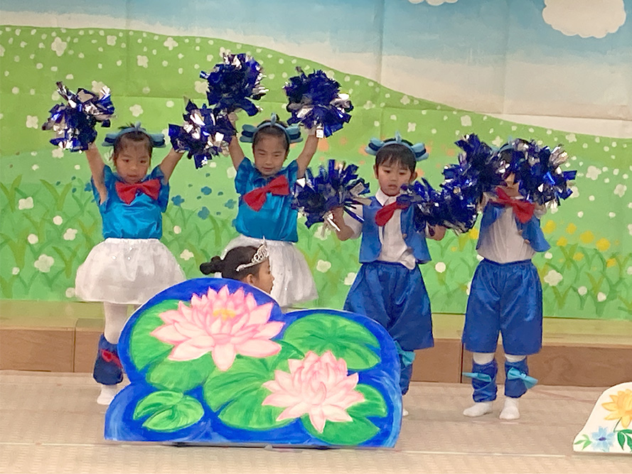 当日は、たくさんの保護者の皆様に見守られる中、子どもたちは少し緊張した様子を見せながらも、いざ音楽が流れると笑顔いっぱいに表現する姿がとても印象的でした。ダンスやオペレッタでは、可愛らしい動きや一生懸命な姿に、会場からは温かい拍手が送られていました。中でも、卒園を間近に控えたさくら組のお友だちは、日本舞踊やオペレッタ、合奏、言葉あそびなど、盛りだくさんの内容に挑戦しました。