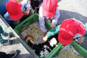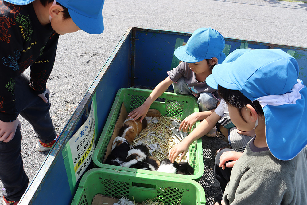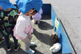 子どもたちは、ウサギやモルモットなどの小さくてかわいい動物たちと実際に触れ合い、優しく抱っこしたり、そっとなでたりしながら楽しいひとときを過ごしました。最初は少し緊張していたお友だちも、次第に笑顔が広がり、動物たちとの距離がぐっと近づいていく様子が見られました。