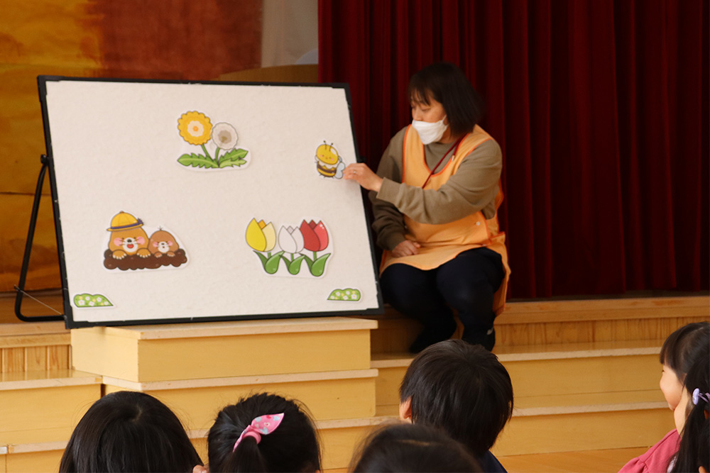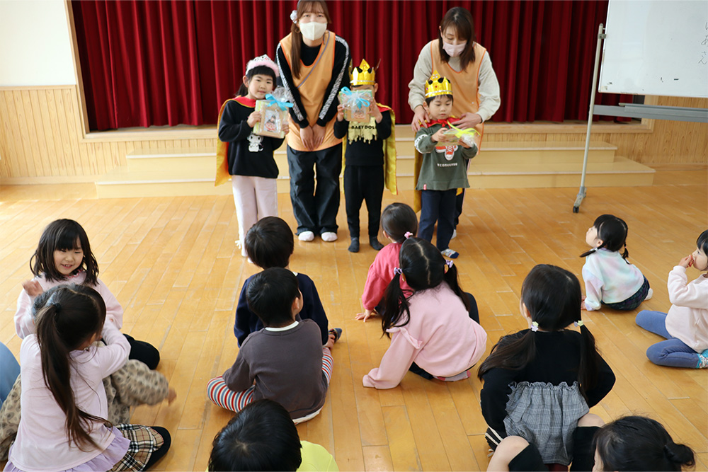 もも組・うめ組・さくら組の子どもたちによる、おゆうぎ会が行われました。